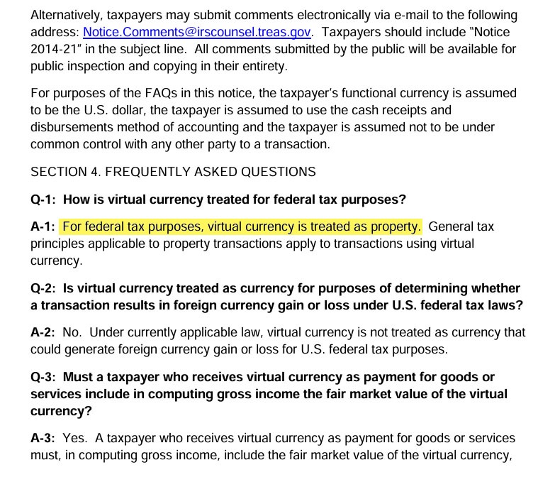 IRS Recognized Virtual Currencies as “Property” in 2014