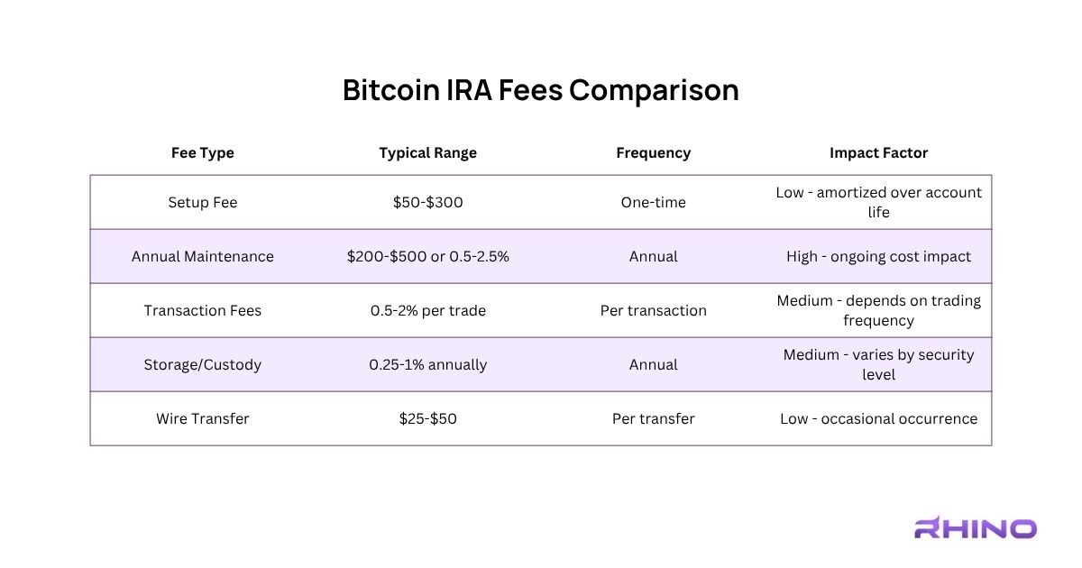 Transaction fees apply to Bitcoin purchases and sales within the IRA, usually ranging from 0.5-2% per transaction. These fees cover the costs of executing trades, coordinating with storage providers, and maintaining transaction records. High-frequency traders should carefully evaluate transaction costs, while long-term buy-and-hold investors face minimal impact from these charges.