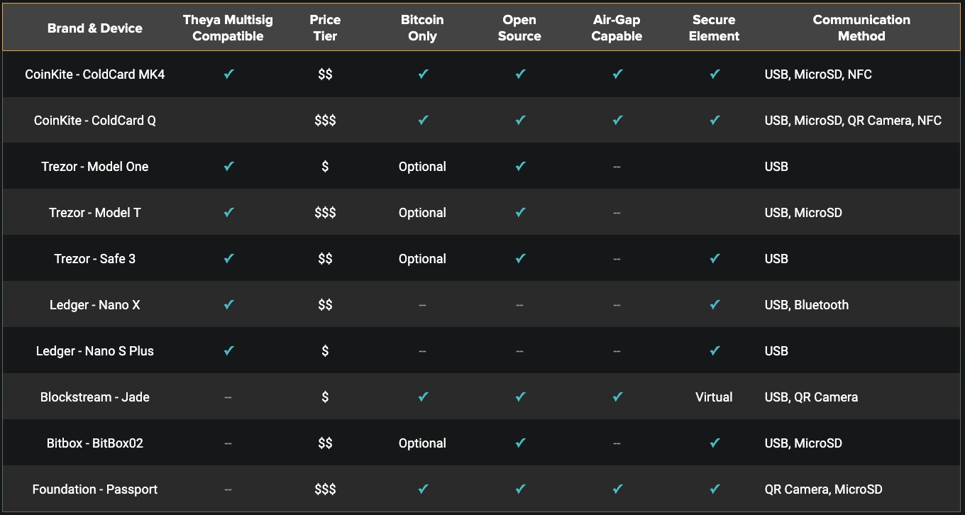 Comparison of Different Hardware Wallets